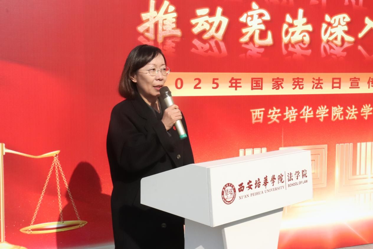 学生代表李思宇从“学宪法”与“讲宪法”的双重角度进行宣讲。她结合自身学习体会,讲述了宪法知识与青年法学子成长的紧密联系,并分享了如何将宪法精神融入日常学习和生活,积极向社会传播法治正能量的思考,展现了法学院学子知法、懂法、守法的自觉与担当。