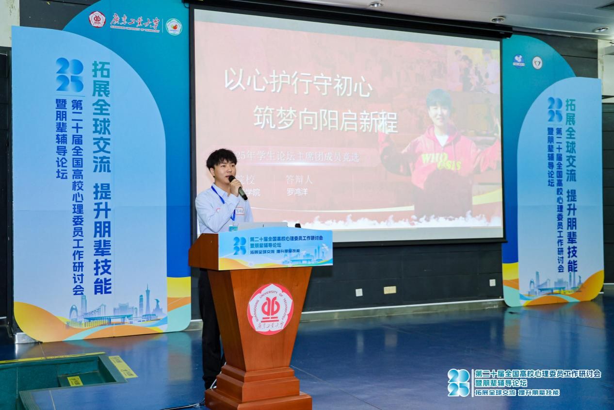 从校园心理服务的“实践者”到全国论坛的“参与者”,罗鸿洋始终以青春热忱践行心理育人的责任。此次当选既是荣誉,也开启了新起点。未来,他将以论坛为纽带,积极学习全国高校心理工作先进经验,结合西安培华学院实际持续创新朋辈辅导模式,带动更多同学参与心理健康服务。同时,学生潜能发展中心也将依托更多的专业平台,联动校内心理健康的各类资源,带动更多同学参与心理健康服务,进一步夯实“五心同筑、双元互动、五育并举”的心理育人工程,积极贡献培华青春力量。