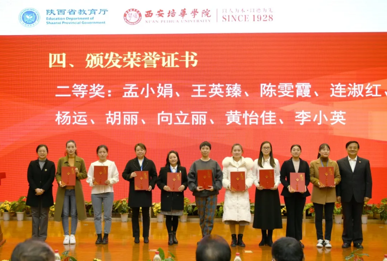 3日,此次展示活动在西安培华学院图书馆报告厅举行闭幕式,闭幕仪式由陕西省教育厅基础教育二处处长陈娟主持;西安培华学院理事长姜波为全体教师赠送定制纪念品;西安培华学院校长李映方宣布展示活动获奖结果;与会领导为一二三等奖获奖老师颁发证书。