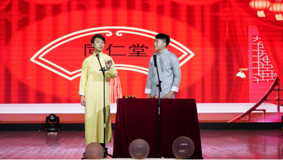 华艺相声社带来相声表演《同仁堂》,用民间说唱曲艺表现生活。