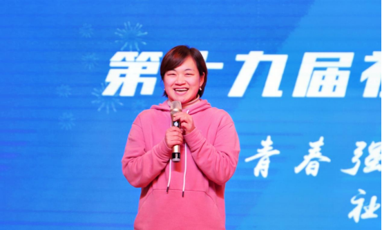 杨媛老师首先对第十九届社团文化月闭幕式顺利召开表示祝贺,她表示:近年来,学校的社团活动丰富多彩,希望各社团在社团管理部的服务下能够蓬勃发展,打造出更多优质的社团特色文化。