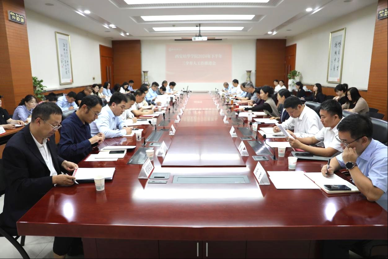 2024年10月25日,西安培华学院在明德楼第一会议室召开2024年下半年“三全育人”工作推进会。校党委委员,各学院党委(党总支)书记、副书记,直属党支部书记、副书记,各院(部)、中心负责人及党务干事参加会议。会议由校党委书记刘锋主持。
