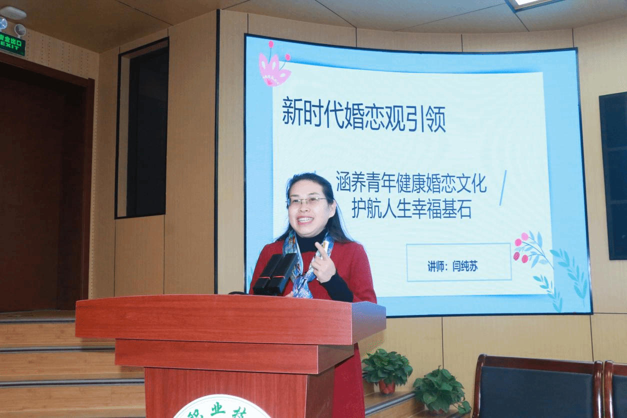 为深入贯彻落实习近平总书记关于家庭家教家风建设及培育新型婚育文化的重要指示精神,引导广大青年学生形成积极健康的婚恋观与家庭观,12月4日下午,由陕西省妇女联合会指导,陕西省婚姻家庭服务与研究基地、商洛市妇女联合会联合主办,商洛职业技术学院承办的“新时代家庭观大宣讲”进高校主题实践活动在商洛职业技术学院图书馆报告厅举行。活动以“树立正确婚恋观,走好幸福人生路”为主题。商洛市妇联主席胡燕梅,商洛职业技术学院党委副书记、工会主席吴雪,副院长李承涛,陕西省婚姻家庭服务与研究基地负责人,西安培华学院女子学院副院长李蒙,骨干教师秦园,基地专家团成员及师生代表共200余人参加了活动。