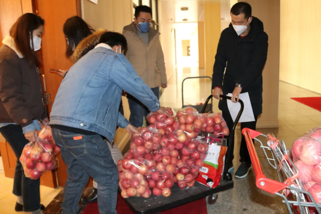 居家上网课的西安培华学院人力资源管理专业教师江凤香在微信朋友圈得知这个消息后,考虑到“奋战在学校抗疫一线的同事们很辛苦,已经坚守半个多月了”,她便主动联系合作社表示愿意个人认购1000斤苹果捐赠给住校坚守的同事们。