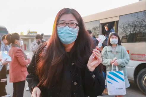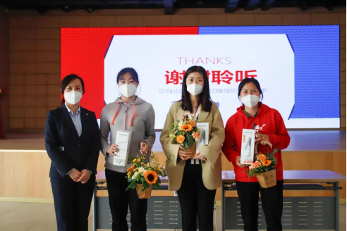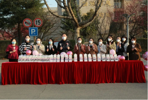 拿到节日礼物的女老师们笑容满面,表示在这个特殊的节日收到学校的暖心礼物幸福感爆棚。