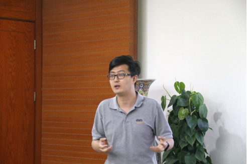 张一帆总监对亚马逊云科技相关情况进行介绍,并提出校企合作方面合作的不同模块,包括云创学院、数字校园建设等内容。