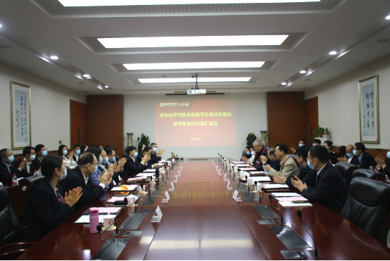 5月17日,陕西省教育厅、西部评估中心组织以西安电子科技大学原副校长傅丰林为组长,西安科技大学副校长王贵荣、西安邮电大学高教所所长王得忠、西安建筑科技大学财务处处长刘光辉、西安交通大学人才交流中心主管梁文洁、中国西部高等教育评估中心主任陆根书、中国西部高等教育评估中心副研究员李珍艳等为组员的合格评估整改督导组一行7人,对我校本科教学工作合格评估督导复查半年整改工作进行“回头看”。