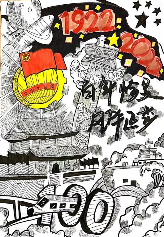 2022年,欣逢中国共产主义青年团成立100周年,在百年的奋斗历程中,中国共青团始终与党同心,与党同行,为庆祝中国共青团成立100周年,社团团工委主办,社团管理部积极动员各学生社团广泛参与“风雨飘零辟新路,百年艰辛载荣光”多种形式的主题团日活动。其中包括海报及手抄报征集,下面一起欣赏一下同学们的作品吧。