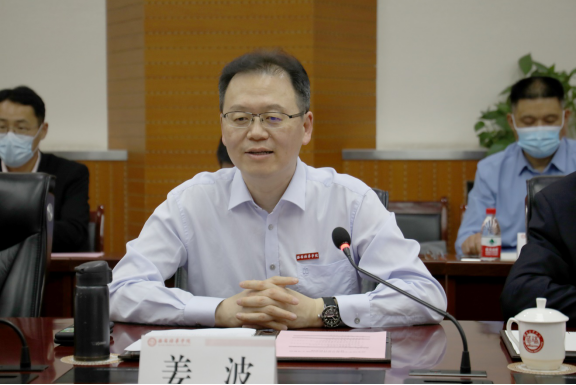 姜波代表学校领导班子对崔景文一行来校检查督导表示欢迎并致辞。他强调,西安培华学院办学历史悠久,文化积淀深厚,是民办高等教育、爱国主义教育、思想政治教育、党史学习教育、女性教育和职业教育的窗口。作为民主党派人士,始终坚持以一名共产党员的标准严格要求自己,规范学校发展。这次有幸迎来省委督导检查,给培华“把脉定向”,是这所根正苗红的民办大学在新时代焕发新的生机和活力的重要契机。