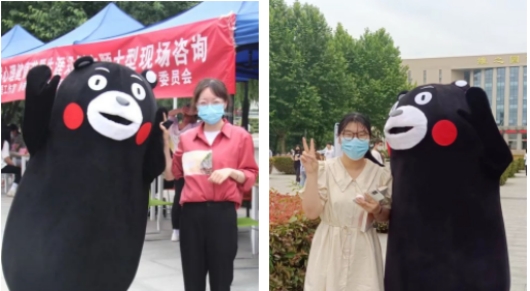 路过的同学们纷纷上前拍照合影,给予爱的拥抱,熊本熊可爱的身姿活跃了现场气氛,为活动增添了许多欢声笑语。