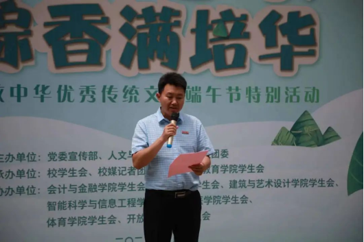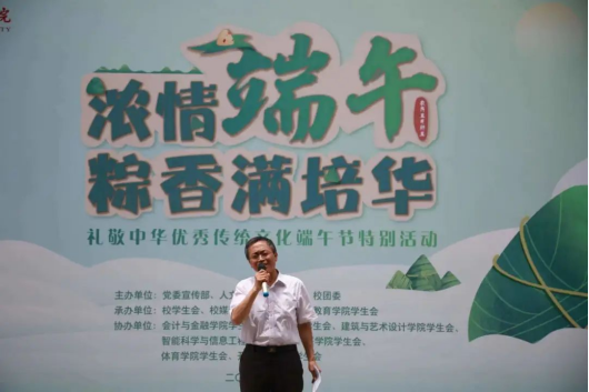 西安培华学院党委委员人文与国际教育学院常务副院长梁蕊宣布“浓情端午·粽香满培华”端午游园会开幕