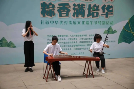 为迎接党的二十大胜利召开,中共西安培华学院委员会举办第六届礼敬中华传统文化系列活动之“浓情端午 粽香满培华”端午节主题活动,师生通过品尝粽子、龙舟竞技、抒写祝福、文化展演等,传承中华优秀传统文化,增强文化自信。