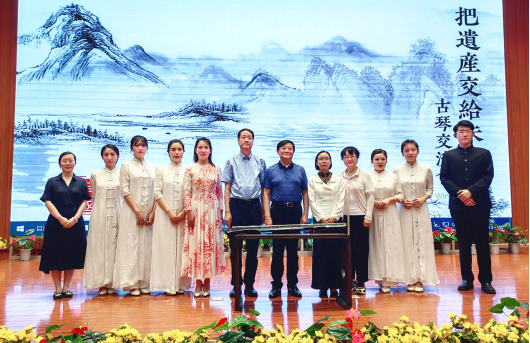 为了更好发挥高校博物馆在传统文化交流与互鉴中的作用,弘扬“传承华夏文明之神韵,播撒人文精神之气象”的琴文化精神,6月13日,由西安音乐学院艺术博物馆中国琴学研究室与西安培华学院艺术教育中心联合举办的“把遗产交给未来古琴交流会”在西安培华学院维之图书馆报告厅举办,中国琴学研究室实践基地教师团队以琴曲赏析的形式与大家展开了对话与交流。西安培华学院校长李映方、女子学院副院长班理、艺术教育中心全体教师及智能科学与信息工程学院百余名学生参加观看了本次演出。