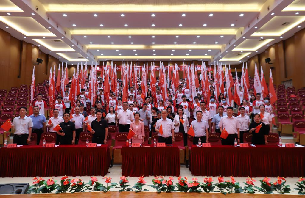 出征仪式现场展播了2021年西安培华学院社会实践“三下乡”《一路生花,青春绽放》;校团委杨媛老师宣读《关于成立西安培华学院2022年度暑期“三下乡”社会实践团队的通知》;参会嘉宾分别为2022校级重点立项团队、2022校级重点立项团队、2022校级重点立项团队授旗。
