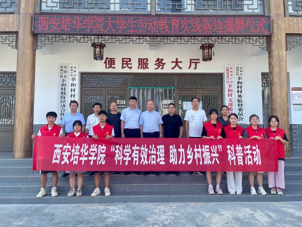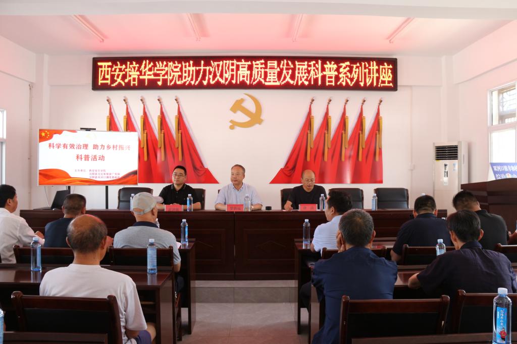 8月5日,西安培华学院赴汉阴县开展助力汉阴高质量发展“科学有效治理 助力乡村振兴”长安讲坛科普活动,西安培华学院党委书记、西安培华学院助力汉阴高质量发展课题组组长、陕西省乡村振兴专业研究会会长罗新远,团县委书记武进朝,汉阴县双河口镇纪委书记唐波,双河口镇副镇长,驻村工作队负责人李伟,校长办公室主任李健,校党委学工部部长蔡亮,团委书记杨媛,双河口镇幸和村两委会干部、村民代表及我校暑期“三下乡”社会实践队员代表,共计60人参加了此次科普活动。