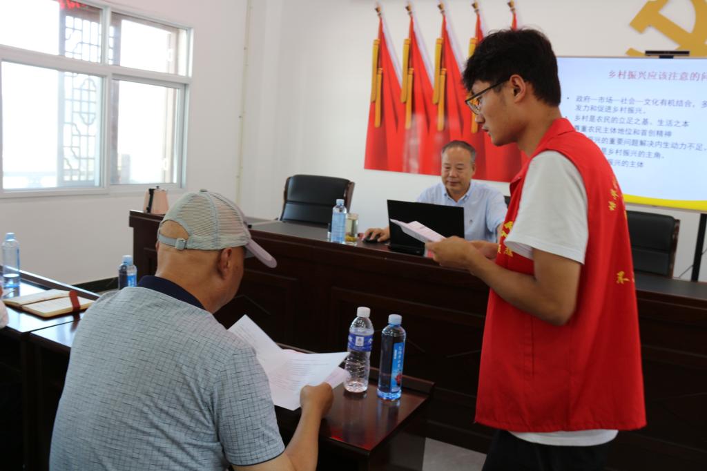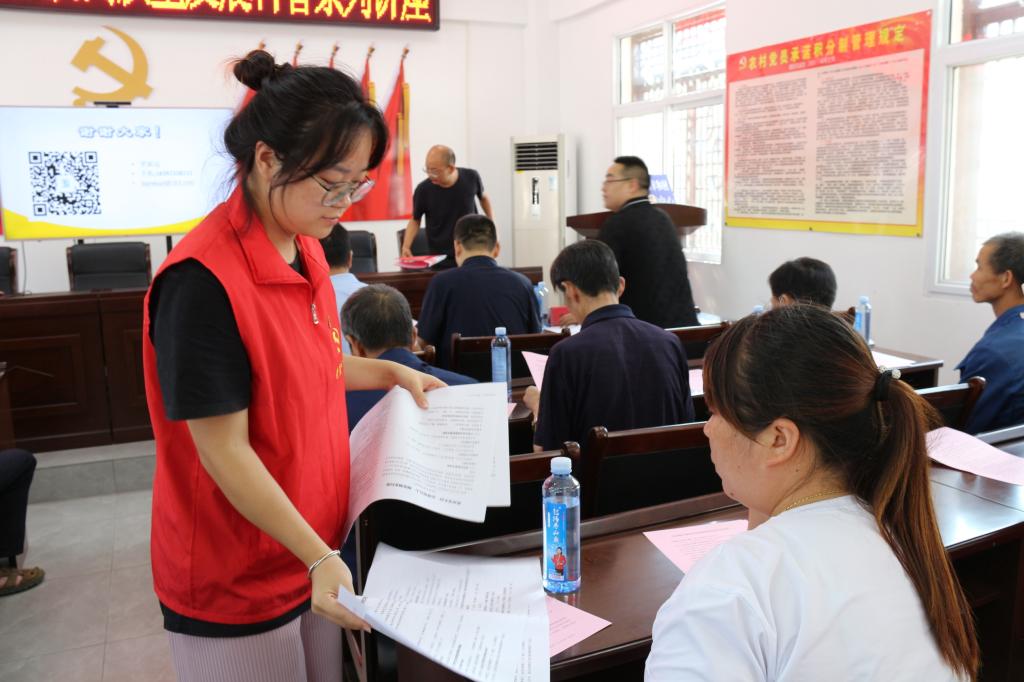 在讲座结束后,调研小组为当地村民发放法律知识宣传小彩页和调研问卷,开展“法律明白人”基层法制工作建设调研及科普活动,罗新远教授与双河口镇及幸和村主要负责同志交流乡村振兴工作,围绕乡村振兴产业发展有效赋能,以此推进乡村振兴“治理有效”工作进一步提升。