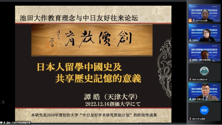 12月16日下午,池田大作教育理念与中日友好往来线上论坛顺利举行。来自西安培华学院、创价大学、陕西师范大学、东北师范大学、天津大学的校领导及专家学者齐聚云端,共同研究池田大作教育理念,交流池田大作先生关于中日友好精神的相关论述,探讨中日高校合作新模式。