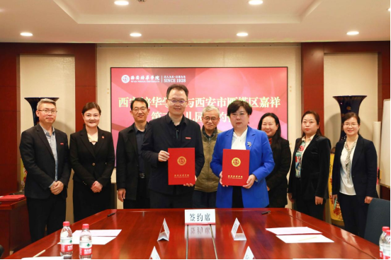 仪式上,学校理事长姜波、西安嘉祥教育集团董事长潘长虹代表校园双方签订附属幼儿园协议书。