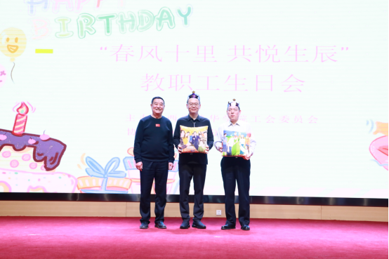 姜波理事长、李映方校长逐一为教职工送上学校精心订制的生日礼物,一份份礼物倾注了学校对教职工们浓浓的关爱和祝福。徐国富主席也为本月过生日的姜波理事长和于国亮校长赠送生日礼品,并现场献歌一曲。