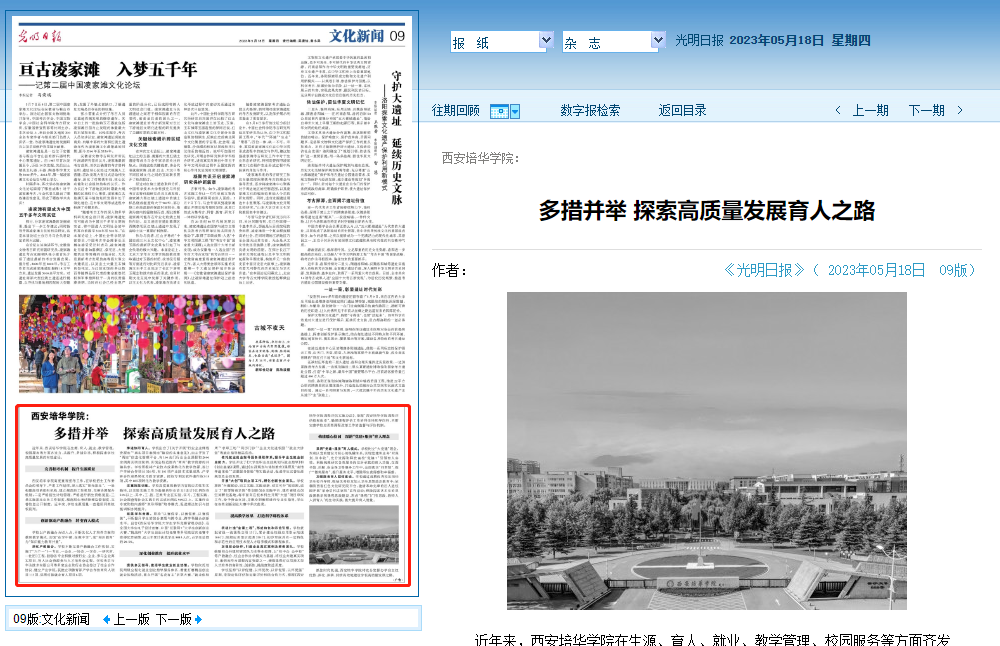 5月18日,光明日报刊发西安培华学院高质量发展工作纪实,介绍了学校近年来从生源、育人、就业、教学管理、校园服务等方面齐发力、共提升,多措并举,积极探索学校高质量发展的有效途径。