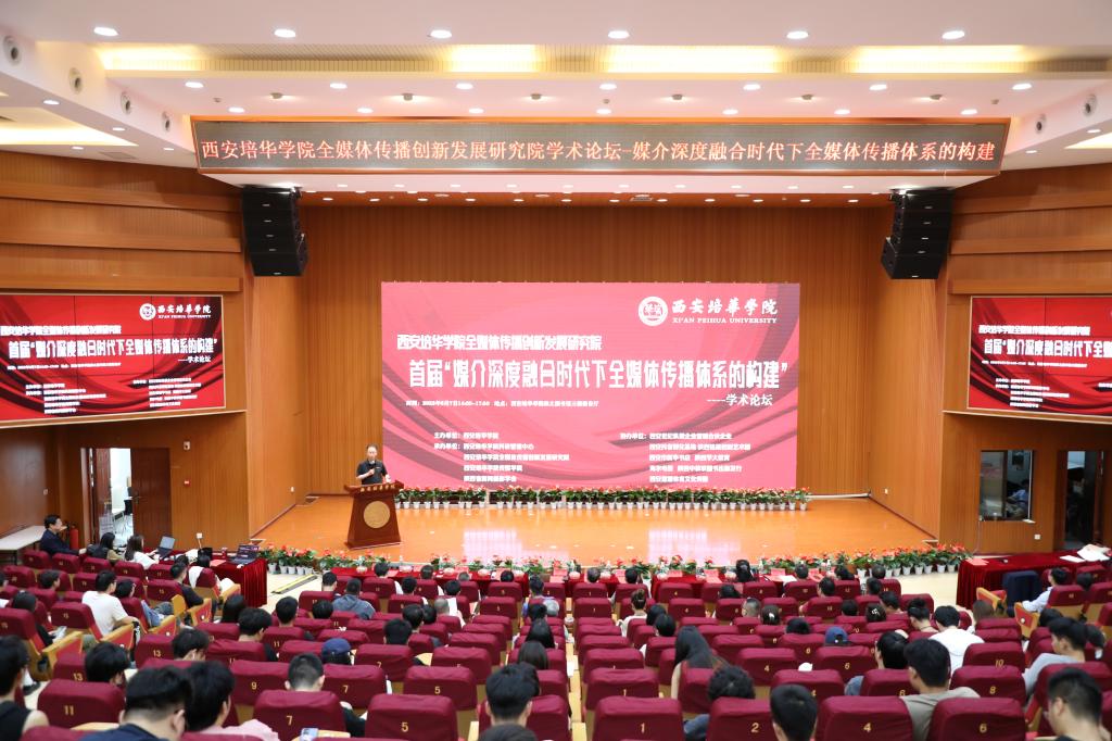 2023年6月7日14时,西安培华学院全媒体传播创新发展研究院首届学术论坛——媒介深度融合时代下全媒体传播体系的构建,在维之图书馆报告厅隆重召开。出席本次论坛的有西安培华学院理事长姜波,陕西广电融媒体集团总编辑胡劲涛,西安培华学院传媒学院院长、全媒体传播创新发展研究院院长杜耀峰,播音与主持艺术系学科带头人、全媒体传播创新发展研究院执行院长周东华,西安培华学院科研管理中心副主任莫姣姣,23位企业、媒体、学界代表以及播音与主持艺术专业教师代表和100余名学生代表。论坛由杜耀峰教授主持。