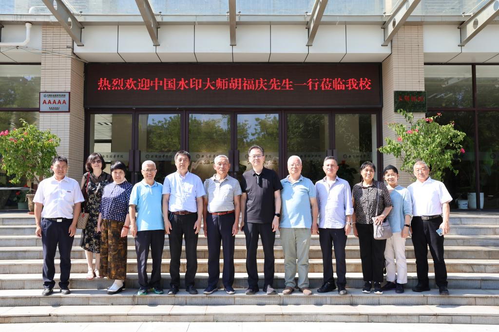 人民币水印设计雕刻艺术家胡福庆对学校的热情接待表示感谢,为近年来学校取得的瞩目成绩给予高度赞赏和肯定,并介绍了此行交流的目的。