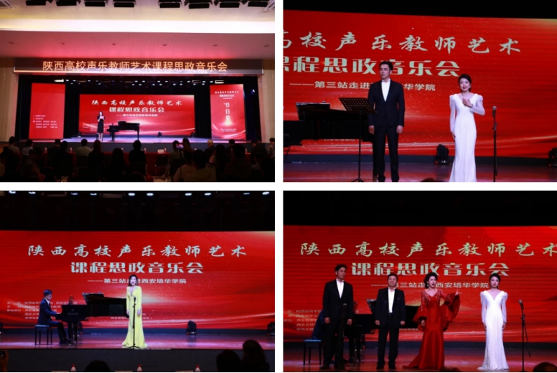 活动最后李光熙副主席,雒萍秘书长及姜波理事长,西安培华学院校长李映方、党委书记罗新远、常务副校长胡俊生,副校长姚文静一行在西安培华学院大学生活动中心观看了陕西高校声乐教师艺术课程思政音乐会,融入了思政元素的音乐会,更像是一股潺潺的清流,沁人心脾,同时又带着红色的光照耀着每个人。
