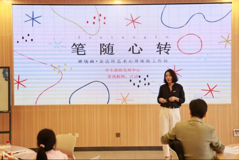 西安培华学院学生潜能发展中心江洁老师带来的心理艺术体验工作坊——“在艺术中疗愈:正念禅绕画”更是将活动推到高潮,在江洁老师的引导下,大家全然放松下来,一支笔,一张纸,所有人都全神贯注、满心惊喜,原来我们每个人都是自己心灵的对话者,都可以在创作着自己禅绕画的过程中,释放想象和灵感、产生心流,缓解压力,疗愈心灵。