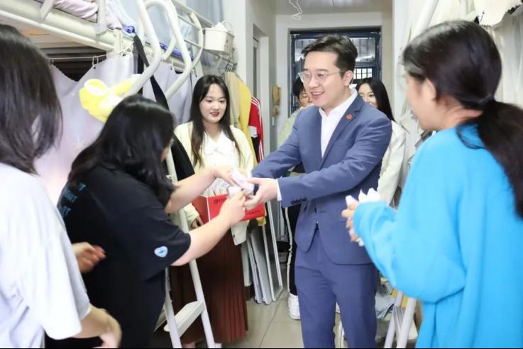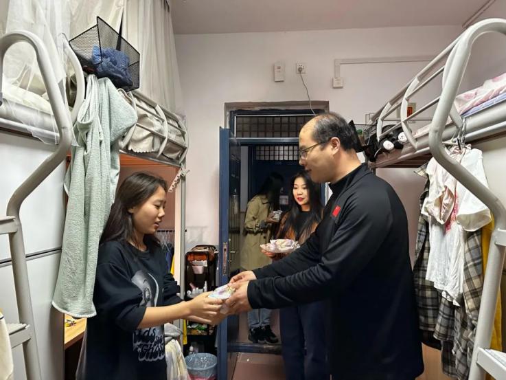 校长助理姜涛、智能科学与信息工程学院常务副院长成立、党总支书记兼行政副院长王林走进学生社区9号楼,为同学们送上培华专属月饼,送上中秋祝福。