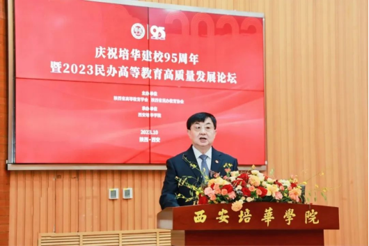 为庆祝培华建校95周年,助力学校高质量发展,10月22日,由陕西省高等教育学会、陕西省民办教育协会主办、西安培华学院承办的“2023民办高等教育高质量发展论坛”在西安培华学院明德楼报告厅举行。高等教育专家学者、民办高校负责人、行业企业专家等齐聚一堂,通过线下论坛交流、线上直播互动的方式,分享办学经验、探讨发展路径,研讨民办高校高质量发展的策略。本次论坛以“民办高等教育高质量发展”为主题,深入探讨民办高等教育如何在教育强国进程中发挥更大作用,更好地在应对发展挑战、破解时代性课题、服务区域创新发展、实现高质量发展等方面如何发挥高等教育不可替代的积极作用具有重要意义。