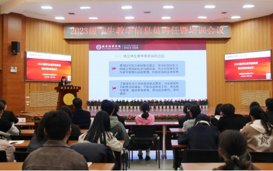 为提高我校学生教学信息员参与教学管理的能力和素质,做好信息收集与反馈工作,持续改进教育教学质量,推进教风、学风建设,学校于11月17日下午,在明德楼报告厅组织召开了2023级学生教学信息员聘任暨培训会议。2023级学生教学信息员近150人参加会议。发展规划与质量建设中心主任助理全婧主持会议。