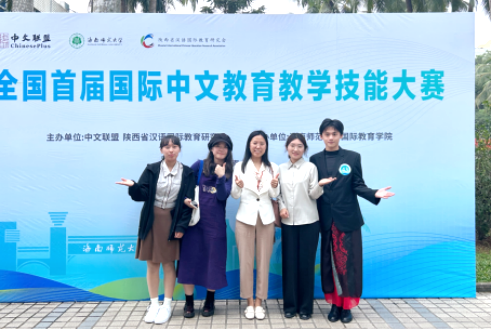 12月2日-3日,由中文联盟支持、陕西汉语国际教育研究会主办、海南师范大学承办的“全国首届国际中文教育教学技能大赛”落幕。本次比赛有来自中国人民大学、中国传媒大学、暨南大学、武汉大学等全国106所高校的264名本科生、研究生、留学生参加。学校人文与国际教育学院汉语国际教育专业2022级赵佳兴同学凭借其扎实的专业知识和良好的语言表达能力,荣获全国三等奖,汉语国际教育专业2021级崔赛、2022级巫丹丹同学荣获优秀奖。