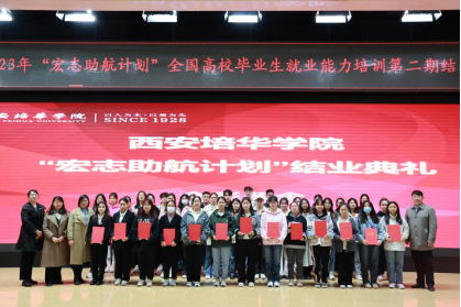 11月17日中午,西安培华学院2023年“中央专项彩票公益金宏志助航计划”全国高校毕业生就业能力第二期培训结业典礼在汇知楼阳光厅顺利举行,招生与就业指导中心主任鲍伟、副主任王琳、主任助理王雪、招生与就业指导中心老师及各班班主任,以及350名学员一同参加本次典礼。