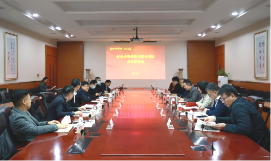 12月7日下午,阳光学院校长乔海曙一行6人来我校调研交流本科教育教学、师资队伍建设、审核评估等工作。我校校长李映方、常务副校长胡俊生、校长助理秦海锋,有关职能部门负责人参加了交流会。