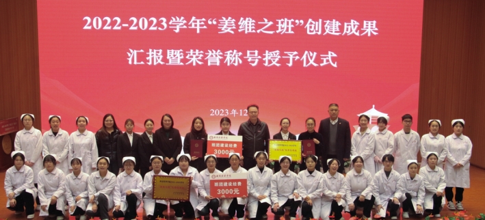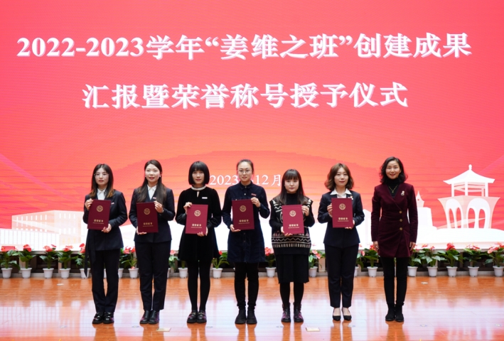 党委学工部部长蔡亮从高度重视,通过正向激励+联动协同保障创建质量;改革模式,通过多元互融+双轮驱动实现增值赋能;机制创新,通过进阶深化+闭环管理推动品质跃升;全面总结,通过数据分析+成果培育反映育人成效四大方面总结了2022-2023学年“姜维之班”创建工作情况。希望大家以更为紧迫、更加扎实、更加精细的作风,一如既往全力以赴、接续奋斗,不断使“姜维之班”创建工作与学生成长期待相契合,和学校事业发展相适应,同学校声誉实力相匹配。为学校发展添彩、为百年校庆献礼!