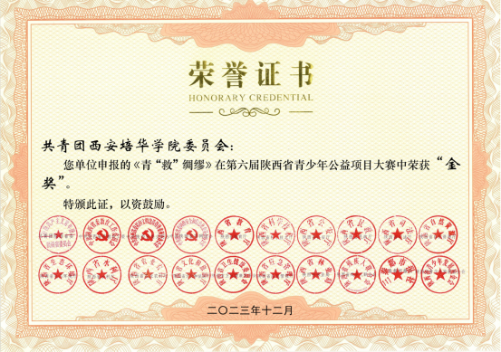 《青“救”绸缪》在第六届陕西省青少年公益项目大赛中荣获“金奖”