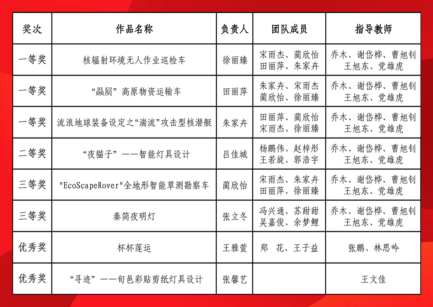 近日,由陕西省教育厅主办的2023年陕西省大学生工业设计大赛获奖名单公布。学校共获得一等奖3项、二等奖1项、三等奖2项、优秀奖2项、优秀辅导教师5名。学校作为本次大赛唯一斩获一等奖的民办高校,总成绩创历史新高。