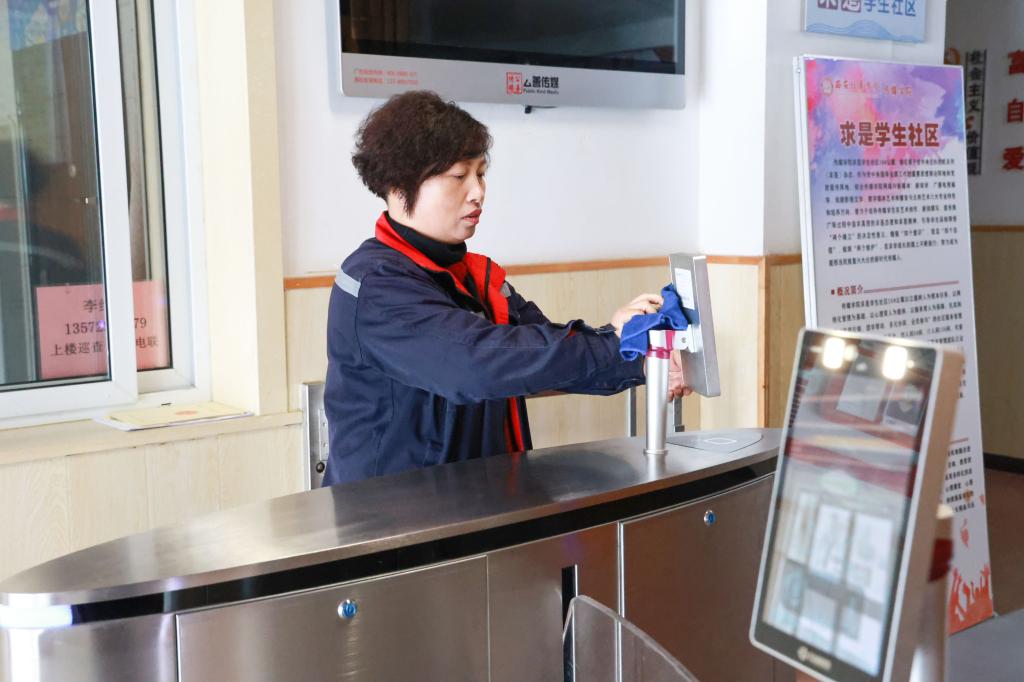 飞雪作伴,后勤人员日日夜夜忙碌在校园各处,默默呵护着每一个角落。