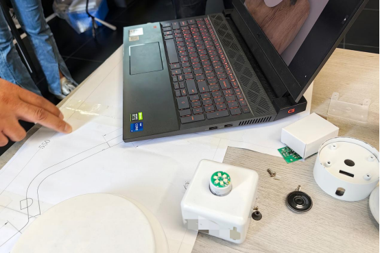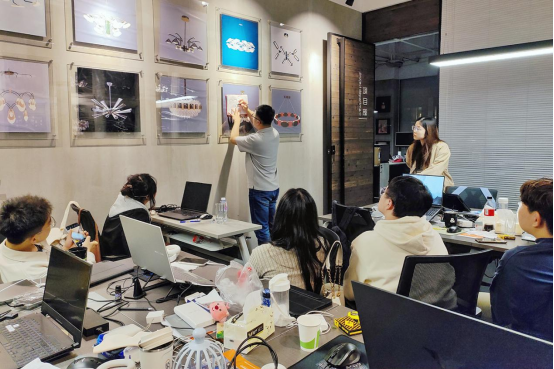 在工程验证阶段,“鸿兴·创谷”的电子和结构研发工程师团队展现了他们高度的专业能力和对工作的热情,他们倾注创意与智慧,运用专业技术和经验将师生们抽象的、甚至可以说是天马行空的概念,转化为切实可行的落地方案。通过不厌其烦地交流和评审,对每一轮的方案进行了严格的筛选与极致的优化,以追求最适合的设计解决方案,保障了最终设计成果在追求创新之外的美观和实用。他们对实际生产流程和加工工艺的谙熟,以及谦逊沉稳的团队协作和项目管理能力,对参与本次驻企实践同学们的个人专业成长和团队协作能力提升都产生了积极的影响。