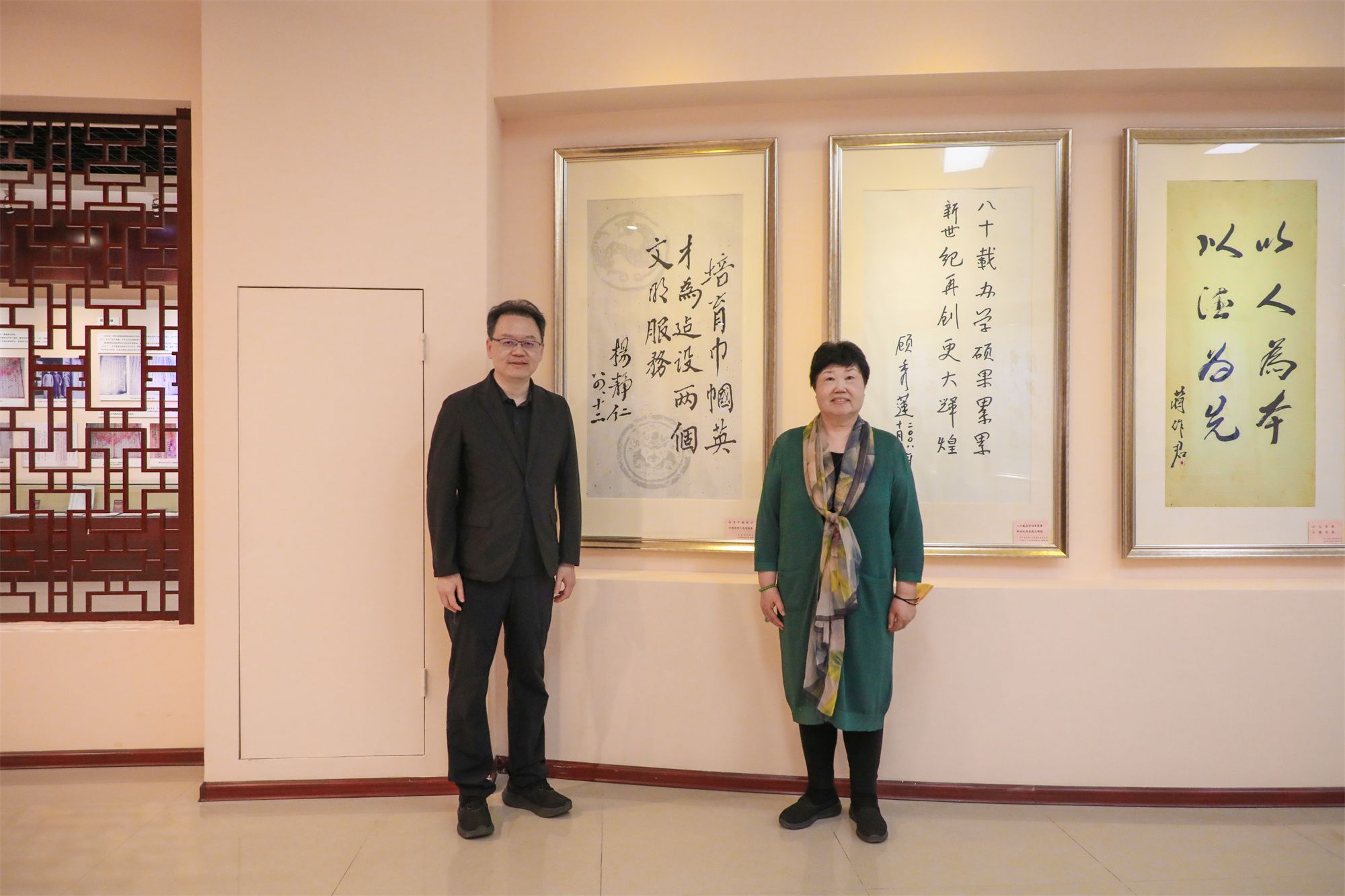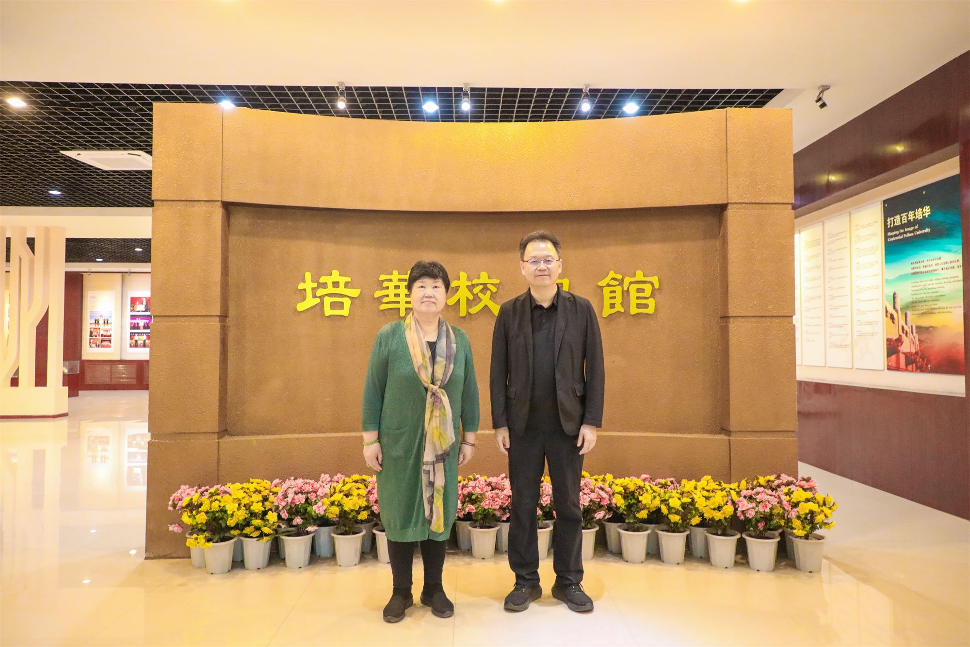 杨兰女士和姜波理事长在培华校史馆合影