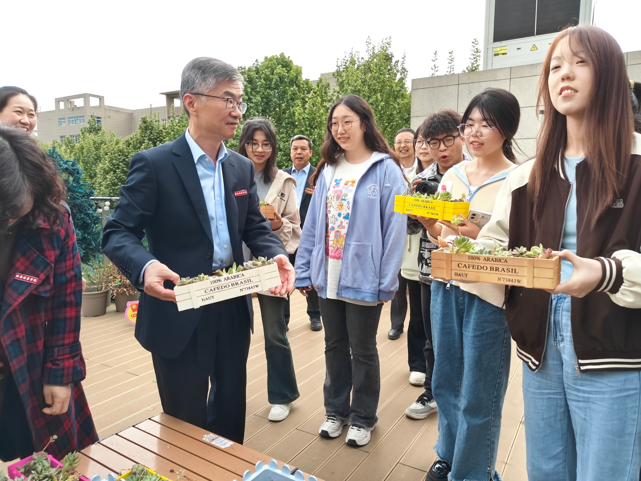 交流结束后,刘锋书记和与会老师为同学们送上生机勃勃的“培华苗”植物盆栽。希望同学们可以像苗儿吸收水分那样,在培华校园里学知识、长本领,向下扎根、向阳而生,茁壮成长。