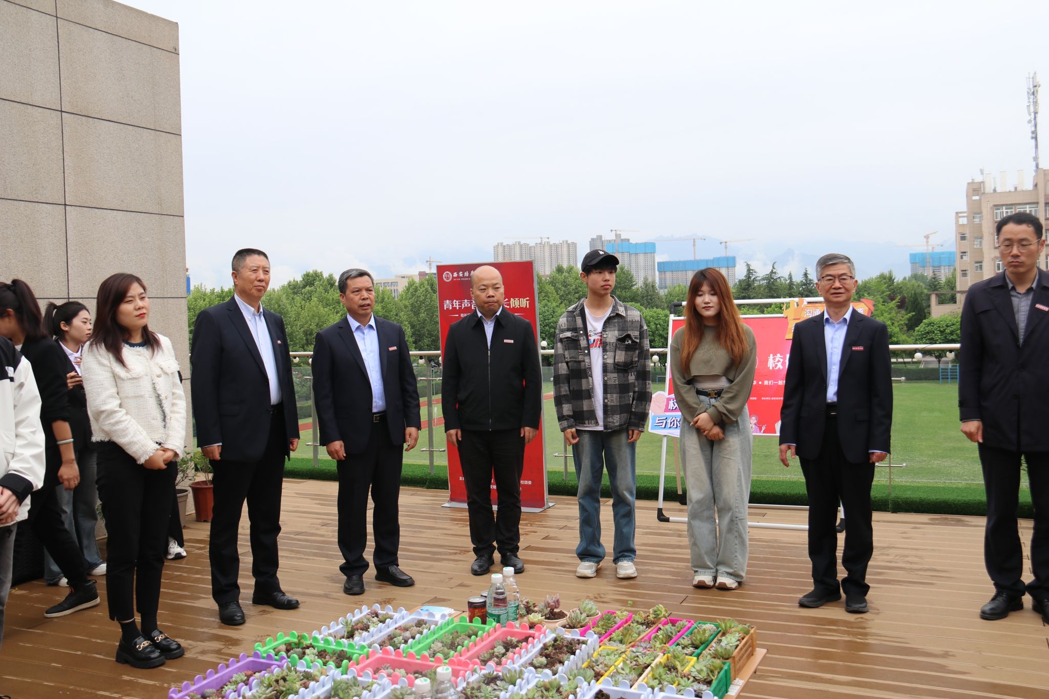 西安培华学院党委书记刘锋、党委学工部部长权勇太、后勤服务中心主任张静远、维之图书馆副馆长闵波、教务管理中心主任助理孟倩、培华医院副院长王斌、“一站式”社区工作办公室主管江俊瑞、学生潜能发展中心教师吕改莲、校医院预防保健科负责人姬方方,校团委、学生服务中心、资助管理中心相关负责老师以及通过校长接待日报名通道选抽取的15位学生代表参加本次活动。活动由校团委书记董莹主持。