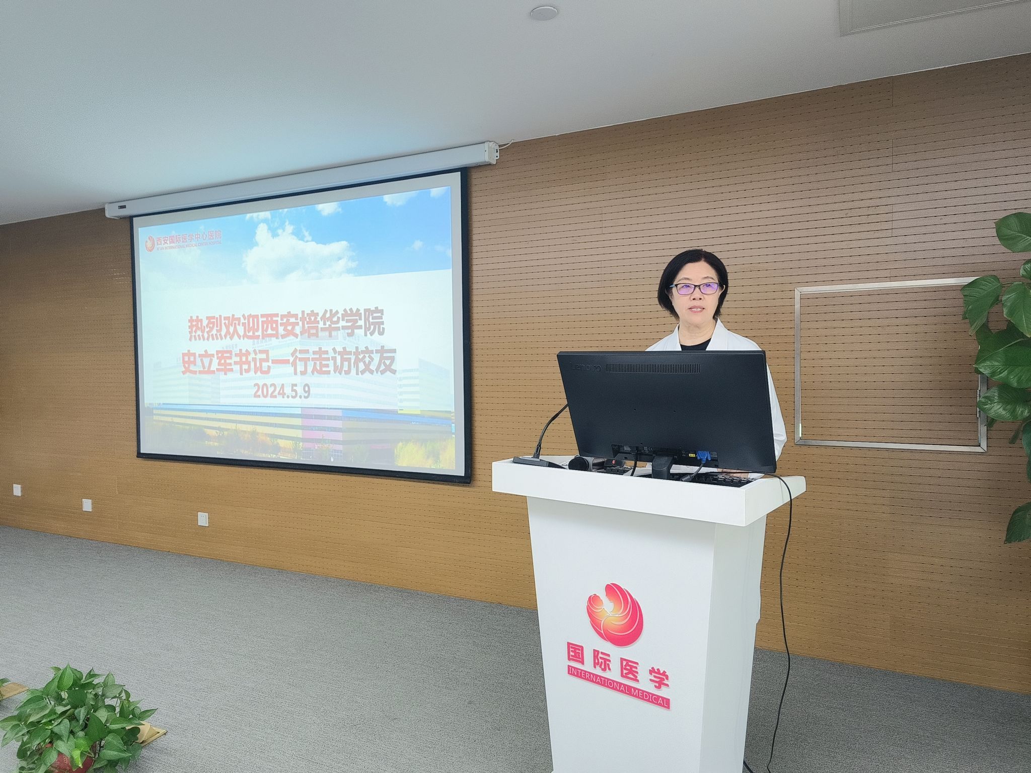 史立军书记对西安国际医学中心的热情接待表示感谢,他介绍了医学院近年来发展概况、就业规模及突出成绩,赞扬了校友们学以致用、兢兢业业,在各自岗位上深耕不辍、砥砺前行的拼搏姿态和奋斗热情,希望校友们与母校同心同向同行,共建共享共赢。