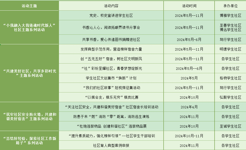 第四届“一站式”学生社区文化节活动一览表