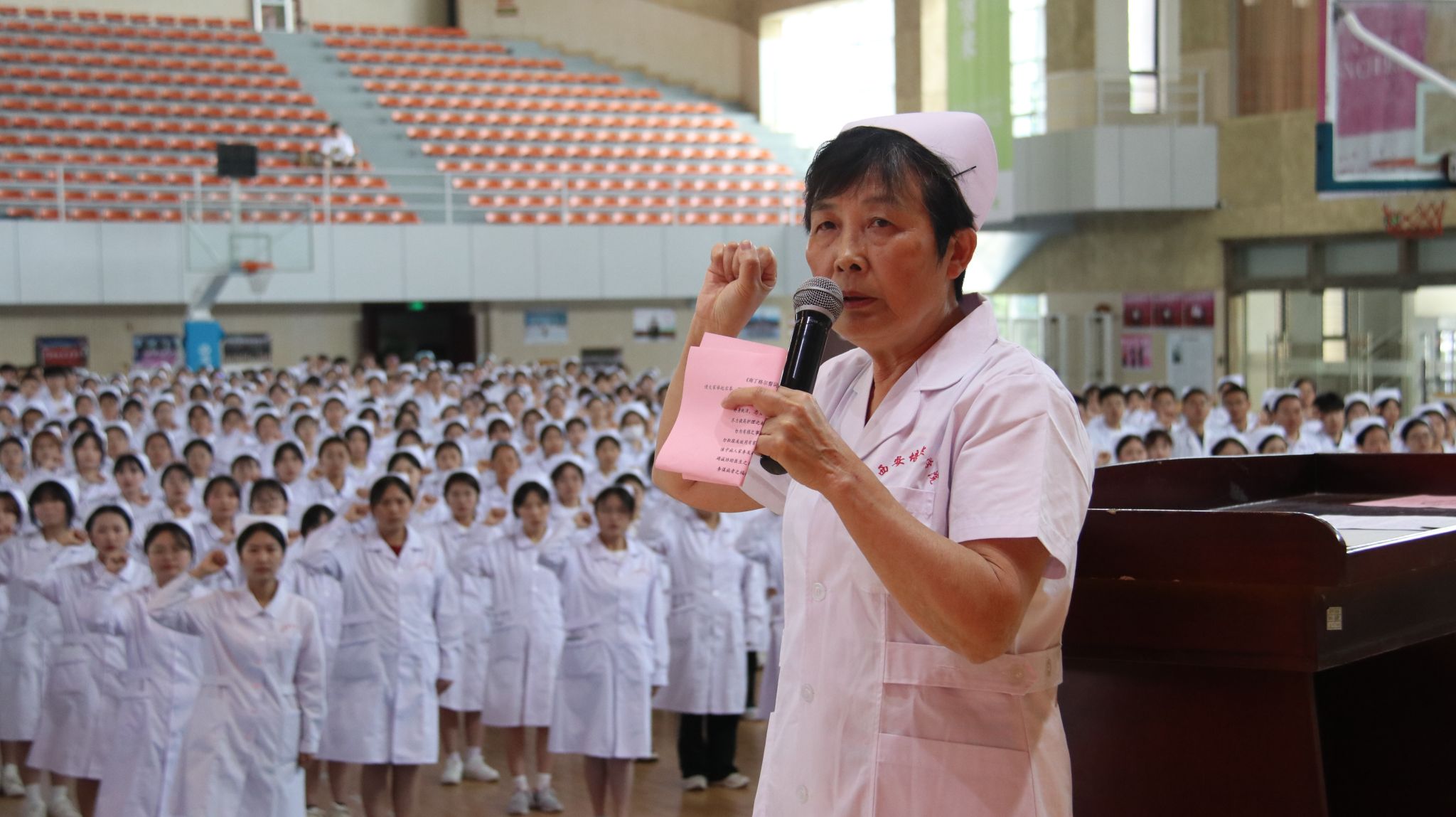 护理学专业带头人化前珍教授带领千名准护士高举右拳共誓《南丁格尔誓言》,以《感恩的心》手语操致敬生命,彰显爱心与责任。他们始终以“端正训练作风、磨炼战斗意识、锤炼不磨精神”为座右铭,为医疗事业贡献力量,共同守护生命之光。