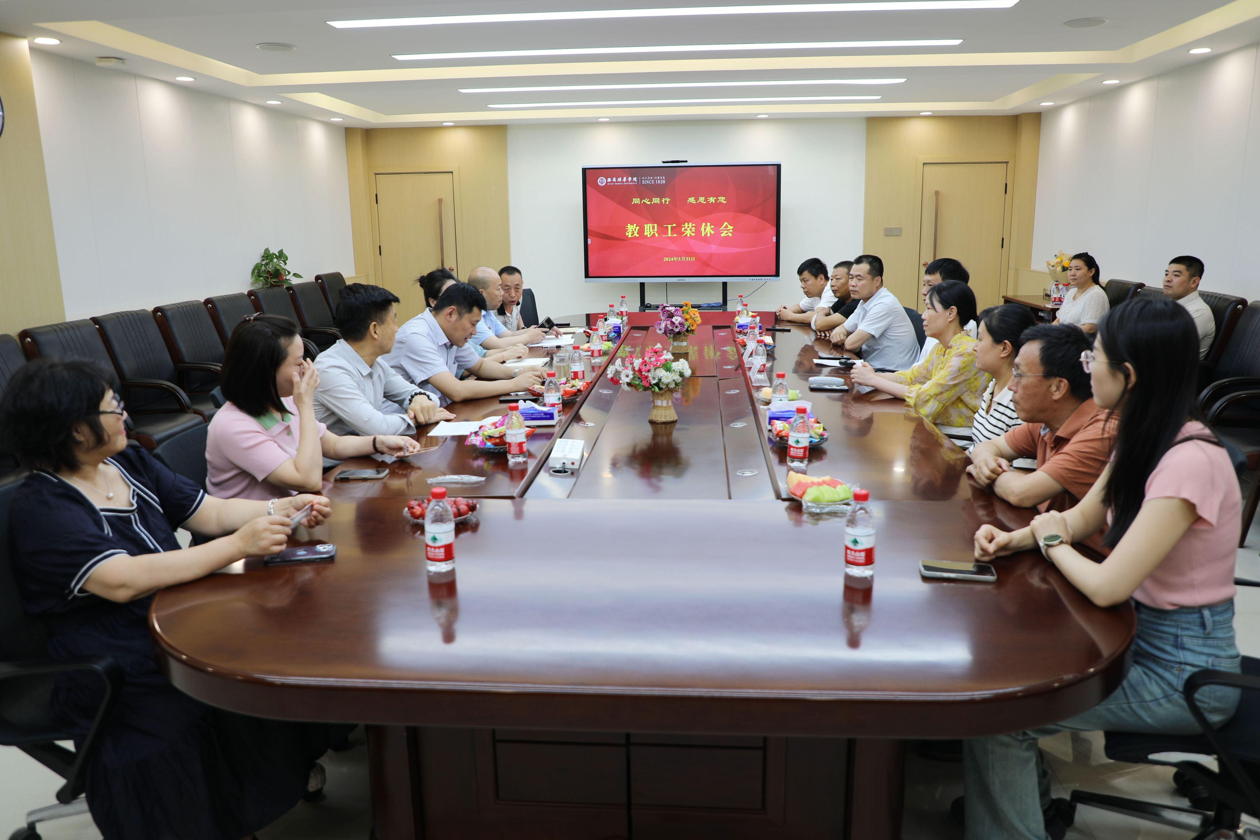 5月31日下午,校工会在第三会议室举行2024年上半年教职工荣休会。工会主席陈玲、发展规划与质量建设中心主任赵巍、后勤服务中心主任张静远以及部分机关干部、教职工代表参加。