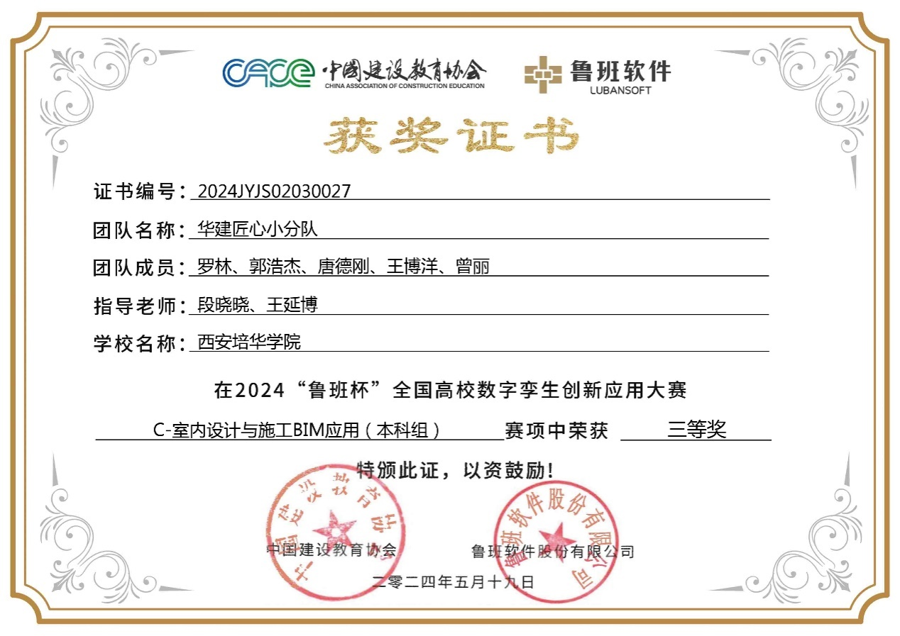 室内设计与施工BIM应用赛项团队三等奖