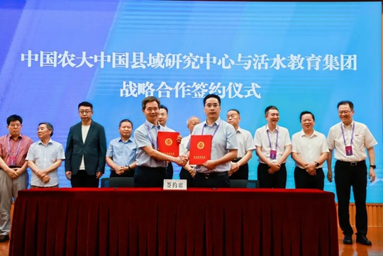 中国农大中国县域研究中心、中国外商投资企业协会开发区工作委员会、全经联与活水教育集团分别进行产教融合签约仪式