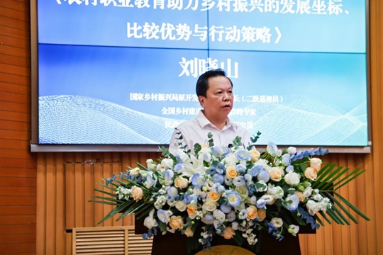 国家乡村振兴局原开发指导司副司长刘晓山作了题为《农村职业教育助力乡村振兴的发展坐标、比较优势与行动策略》报告