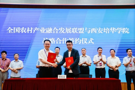 西安培华学院分别与活水教育集团、西安曲江楼观管理办公室、全国农村产业融合发展联盟、中国农科院特产所等进行签约